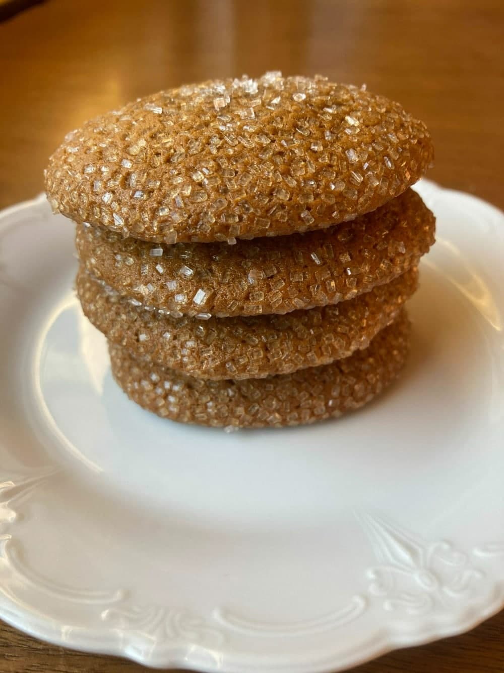 When I told my Aunt Janet that I was including more family recipes this year in the 25 Days of Christmas Cookies, she asked me to include her Ginger Cookies. Aunt Janet is 90 years old and still lives independently in her own home just 10 minutes from us. She has been baking these soft, spicy cookies for decades now.